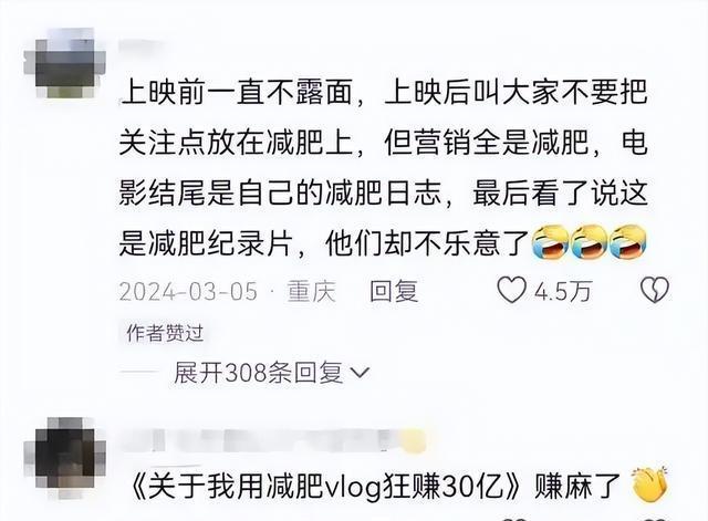 可当《热辣滚烫》带着34亿票房的辉煌战绩和瘦身100斤的惊人话题袭来时,她的身体不再是制造笑声的工具,反而成了一个被仰望、被惊叹的“奇观”。