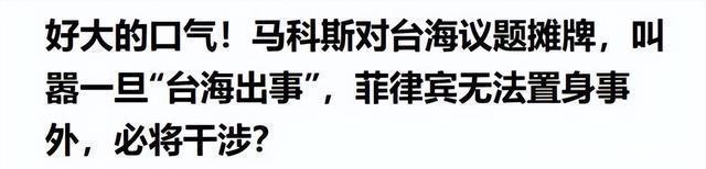 菲律宾总统马科斯本人也早已在台湾问题上多次发表危险言论。 他曾公开表示,如果中美在台湾问题上发生对抗,菲律宾“不可能置身事外”。 他还进一步设想,一旦台海爆发全面战争,菲律宾将被迫卷入,届时必须“保卫自身领土和主权”。